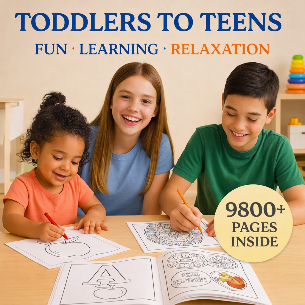 9800+ Kids Coloring Pages MEGA Bundle | Printable Worksheets & Activity Sheets | PLR & MRR Rights